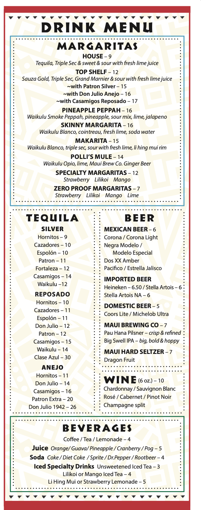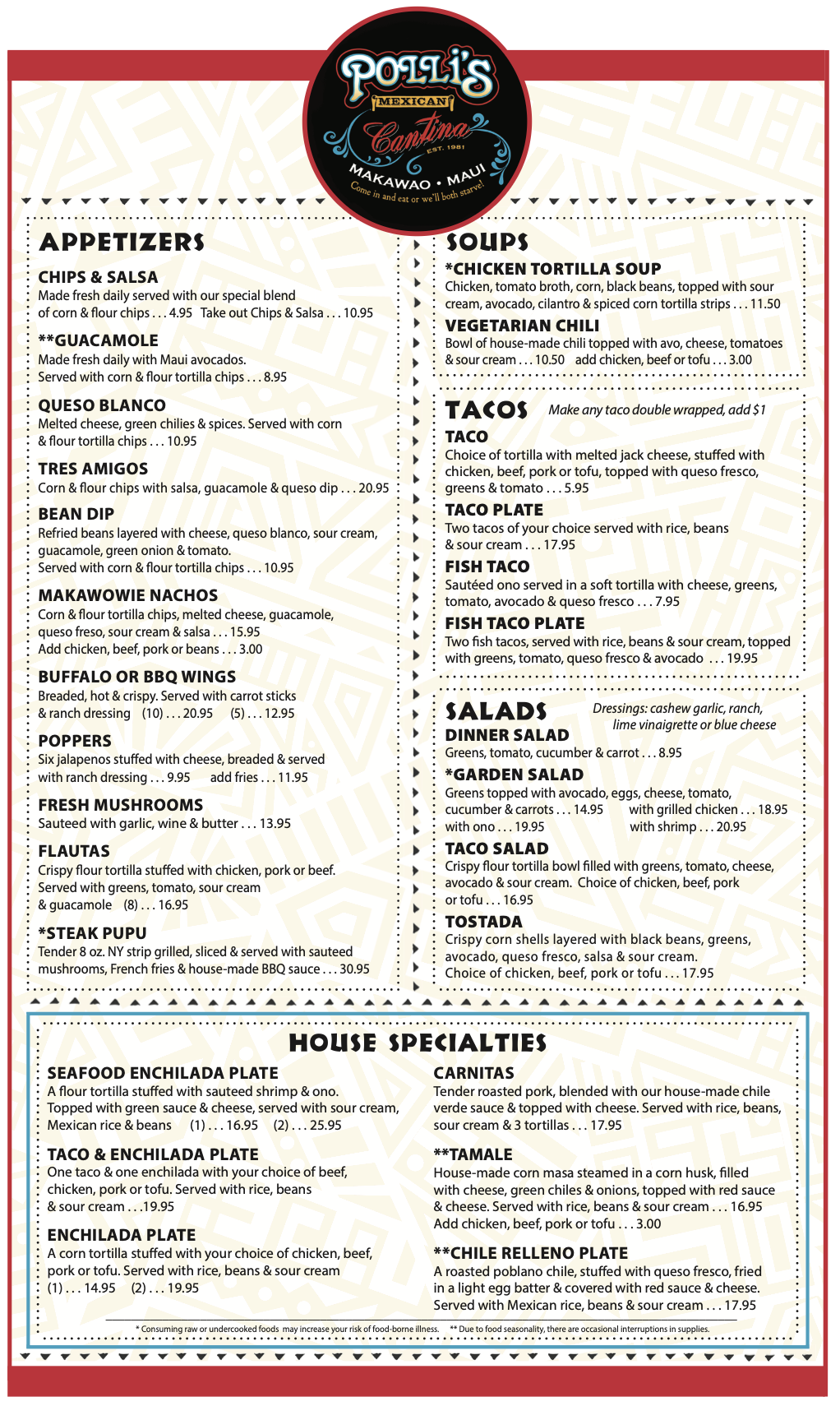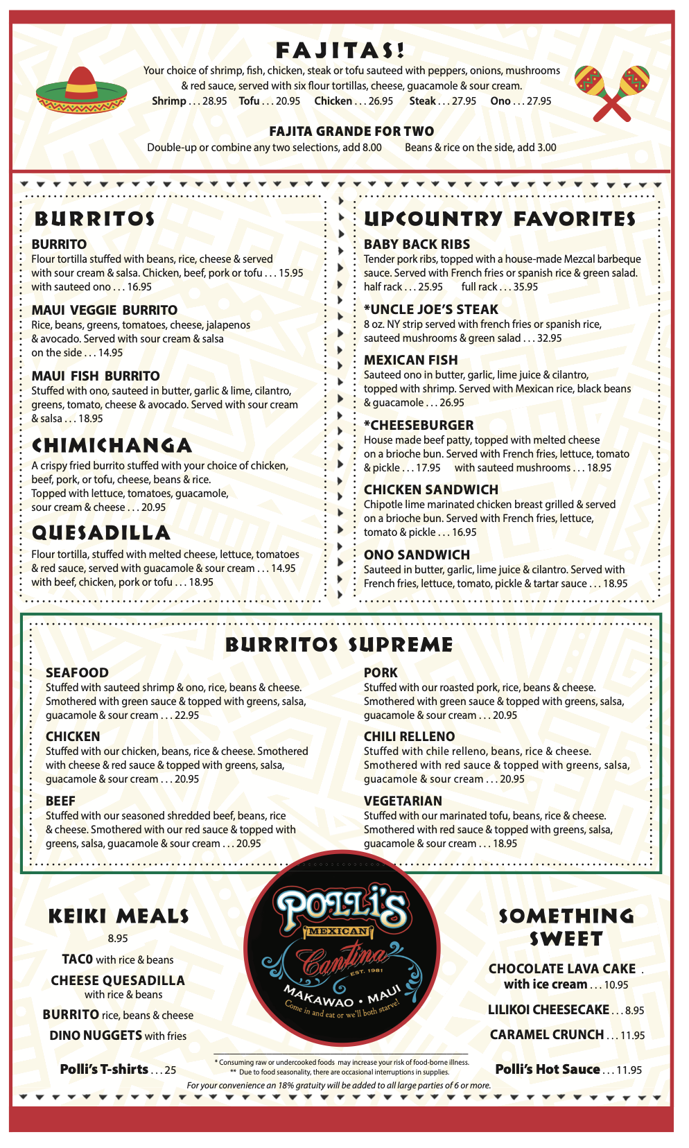 Polli’s Menu